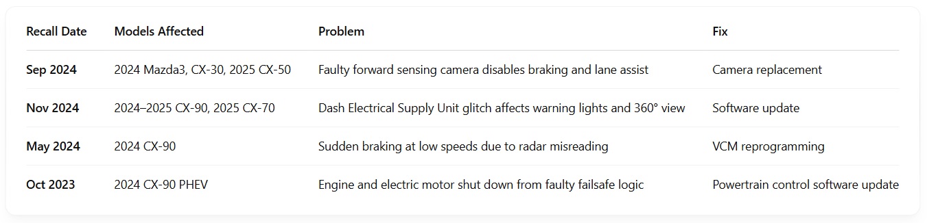 These aren’t just bugs—they’re safety issues that Mazda has publicly acknowledged.